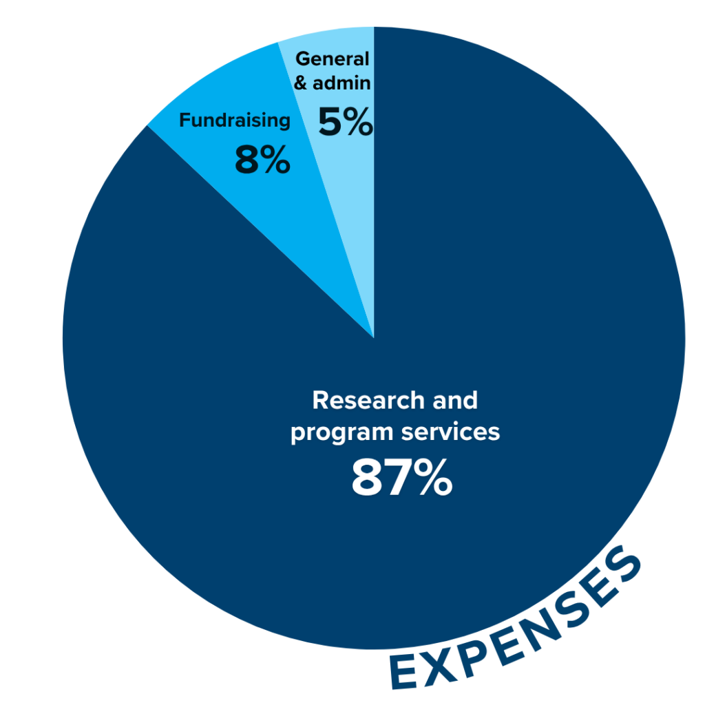 LCRF spends an impressive 87 cents of every dollar directly to funding mission-related programs and services. Among charity rating groups, higher than 65% is widely considered to be good – higher than 85% is excellent. (Figures below as of April 1, 2026; unaudited)