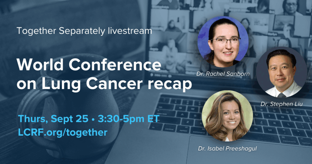 Our September livestream talk featured guest experts Drs. Stephen Liu and Rachel Sanborn, who discussed the this year’s World Conference on Lung Cancer with our moderator, Dr. Isabel Preeshagul.