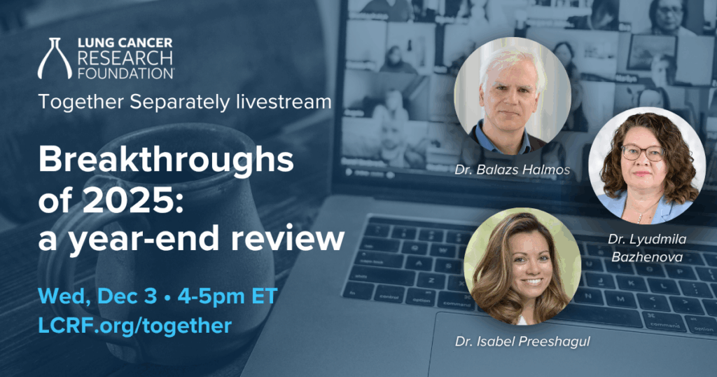 Our December livestream talk, Breakthroughs of 2025 – a Year-End Review, featured guest experts Drs. Balazs Halmos and Lyudmila Bazhenova, who discussed Breakthroughs of 2025 – a year-end review with our moderator, Dr. Isabel Preeshagul.