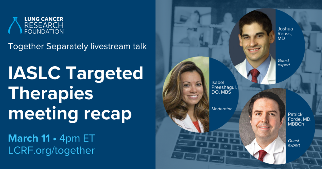 LCRF hosts webinars to bring the lung cancer community together to discuss topics important to them, from challenges of navigating treatment to the latest research findings. Watch for upcoming livestreams here.